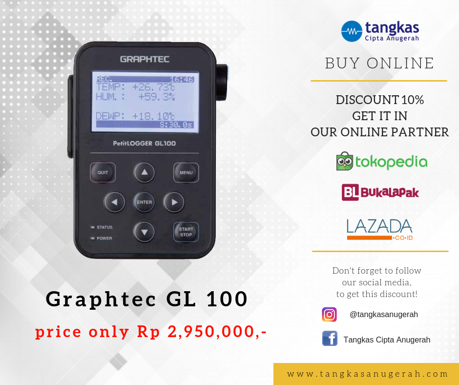 GRAPTECH GL-100 The GL100 Petit Logger is a new compact data logger with a wireless LAN version for easier integration to your GL240 or GL840 data loggers. The GL100 allows users to switch sensors and terminals for measuring a wide range of different input parameters. GET IT NOW !!!